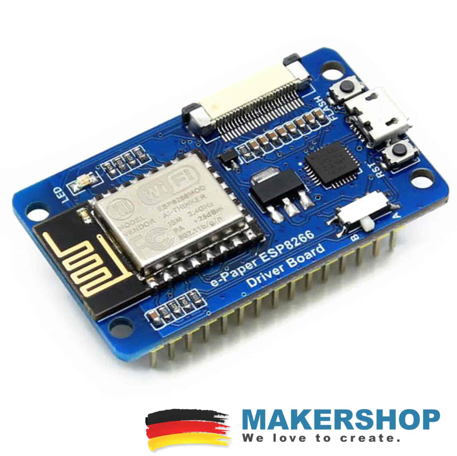 Dieses Board auf Basis des ESP8266 ermöglicht es die E-Paper Raw Displays von Waveshare mit wenig Aufwand ins WiFi zu bringen. Auf diese Weise können die Displays z.B. von einem PC im WLAN oder Smartphone gesteuert werden. Darüber hinaus ist es möglich den ESP8266 wie ein Arduino zu nutzen und ihn auch so zu programmieren, um so Texte oder Grafiken auf den Displays darzustellen.