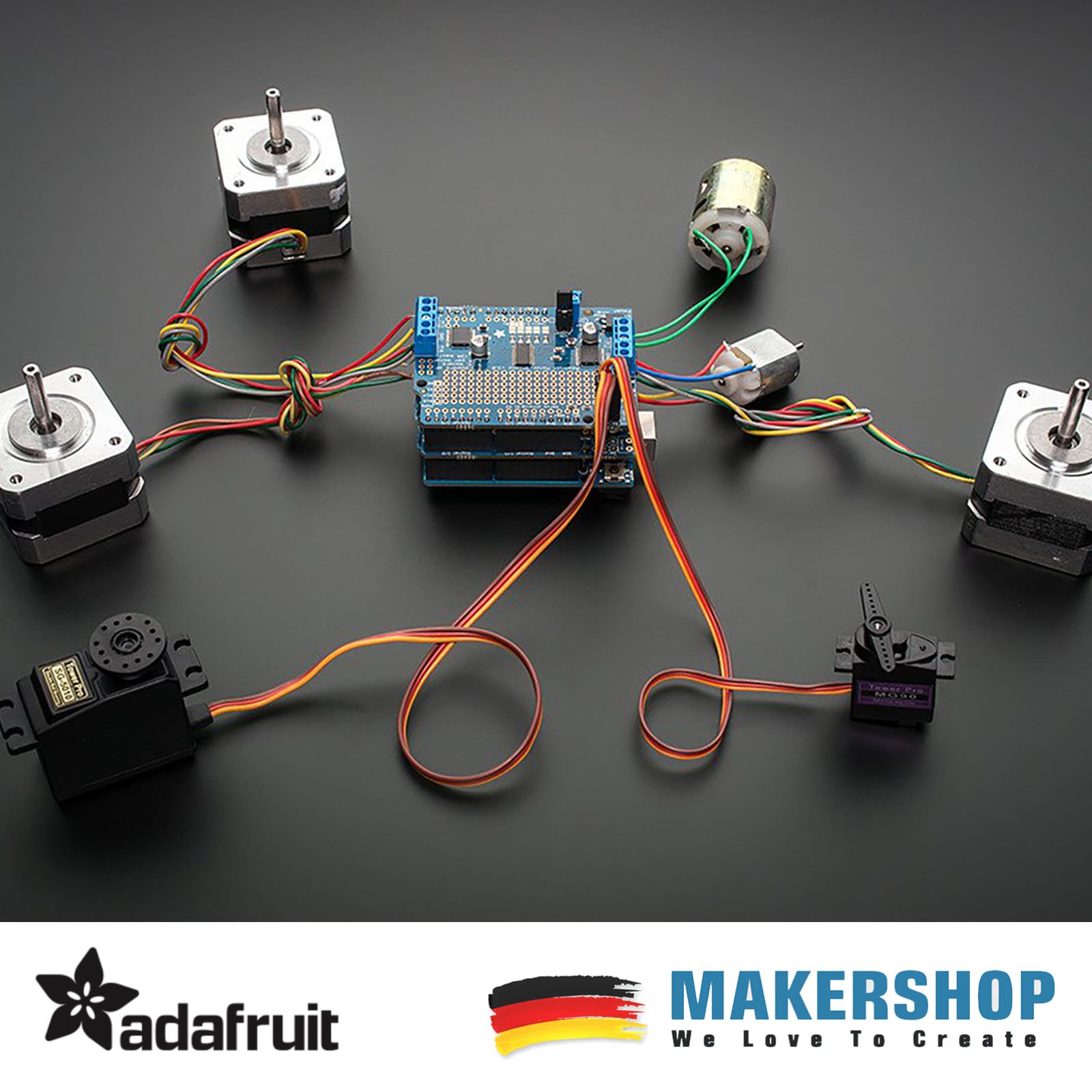 Das original Adafruit Motorshield Kit ist eines unserer beliebtesten Kits. Deshalb haben wir beschlossen, etwas noch besser zu machen. Wir haben das Abschirmungs-Kit verbessert, um die beste und einfachste Möglichkeit zum Antrieb von Gleichstrom- und Schrittmotoren zu bieten. Mit diesem Shield können Sie Ihr nächstes Robotik-Projekt schnell durchführen! Wir können weiterhin bis zu 4 Gleichstrommotoren oder 2 Schrittmotoren antreiben, haben jedoch viele Verbesserungen hinzugefügt: